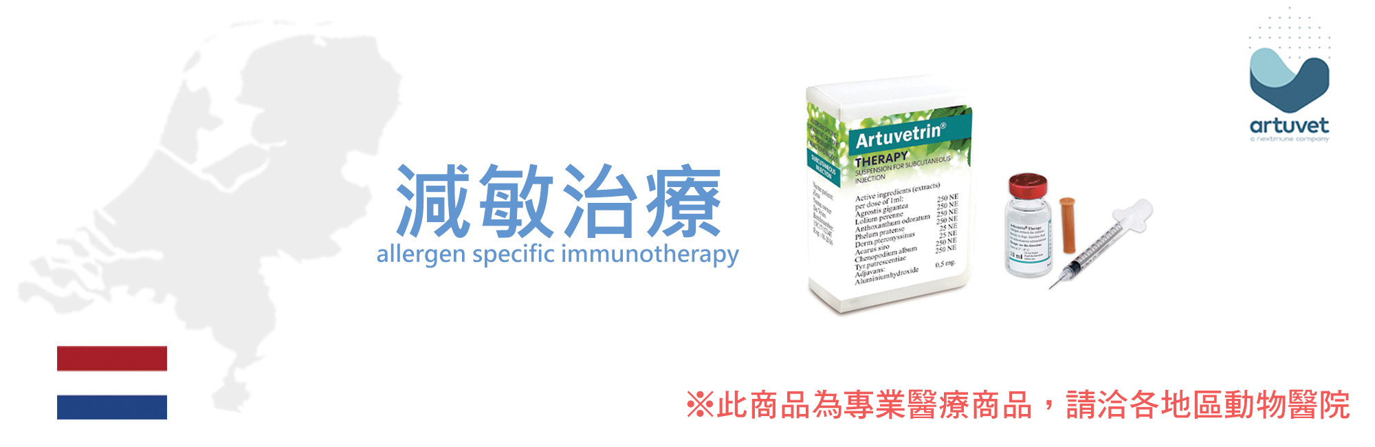 Nextmune自創立以來持續致力於伴侶動物的過敏疾病管理。Artuvetrin®減敏製劑的製程,從生產、製作到出貨,層層把關與嚴密監控,並榮獲環境安全ISO 14001及健康安全OHSAS 18001的認證。為歐盟唯一核可之犬、貓用減敏製劑。