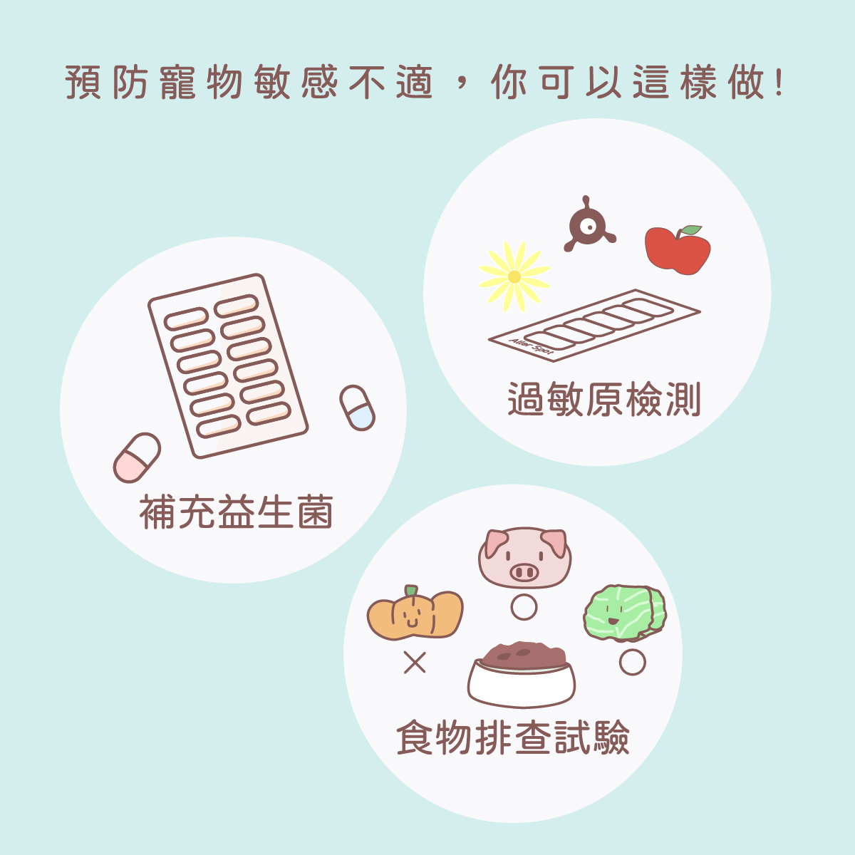 毛拔媽可以考慮藉由過敏原檢測來了解寶貝到底對什麼東西過敏,檢驗報告中不僅會有食物過敏原,同時也會有環境過敏原,不但可以幫助各位家長快速知道,毛寶貝有沒有經常暴露於風險中,也能夠輔助進行食物排查,為過敏管理奠下基礎。