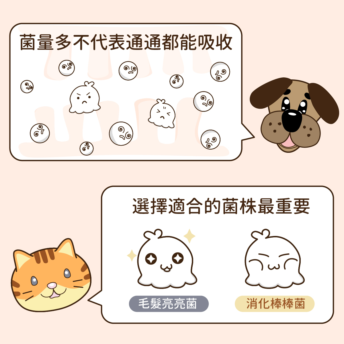 益生菌是「活菌」,在高溫下會導致好菌死掉,建議在餵食寵物的時候不要與超過45度c的食物一起服用,這樣才能讓好菌發揮最大的功效唷。