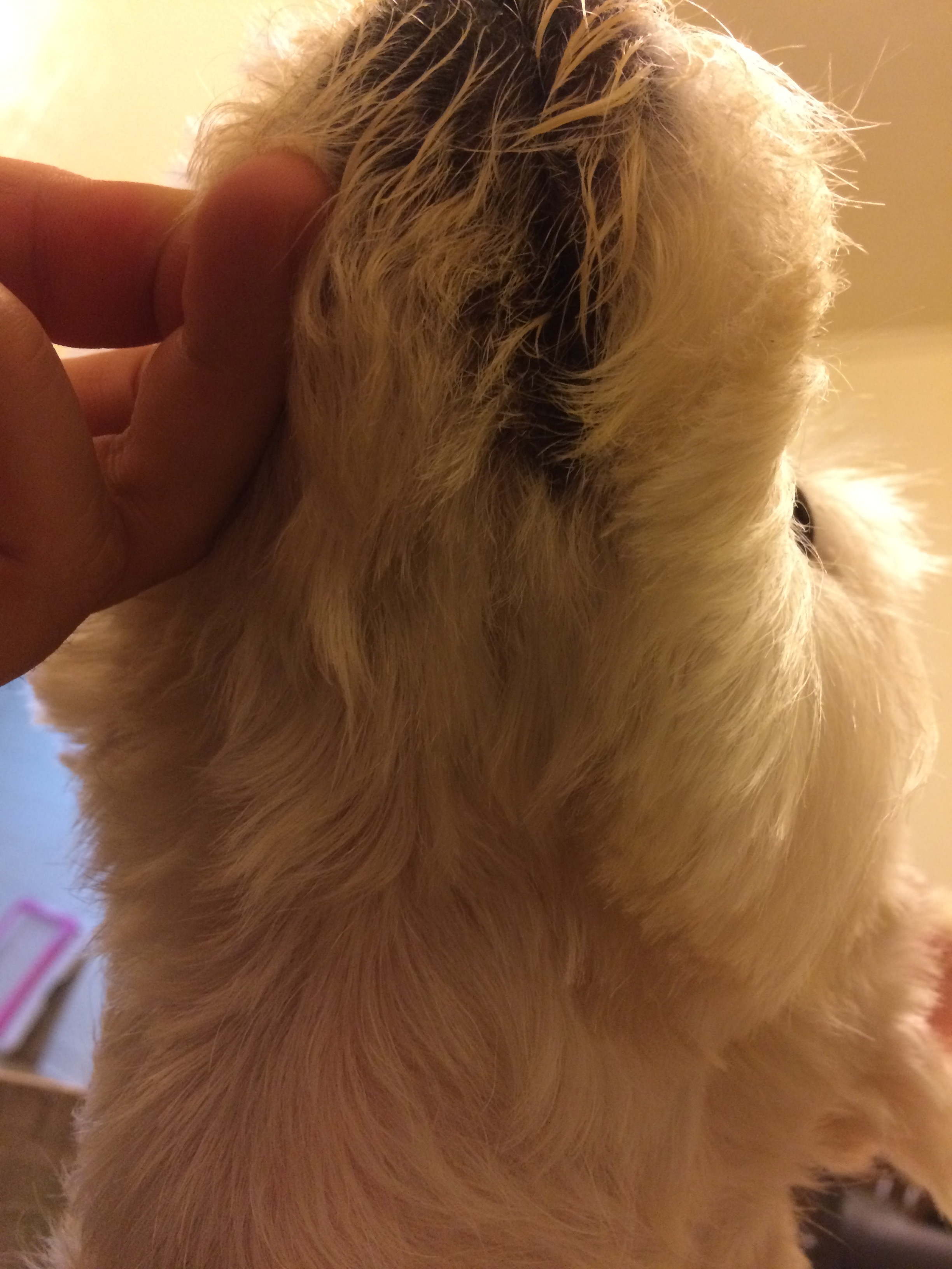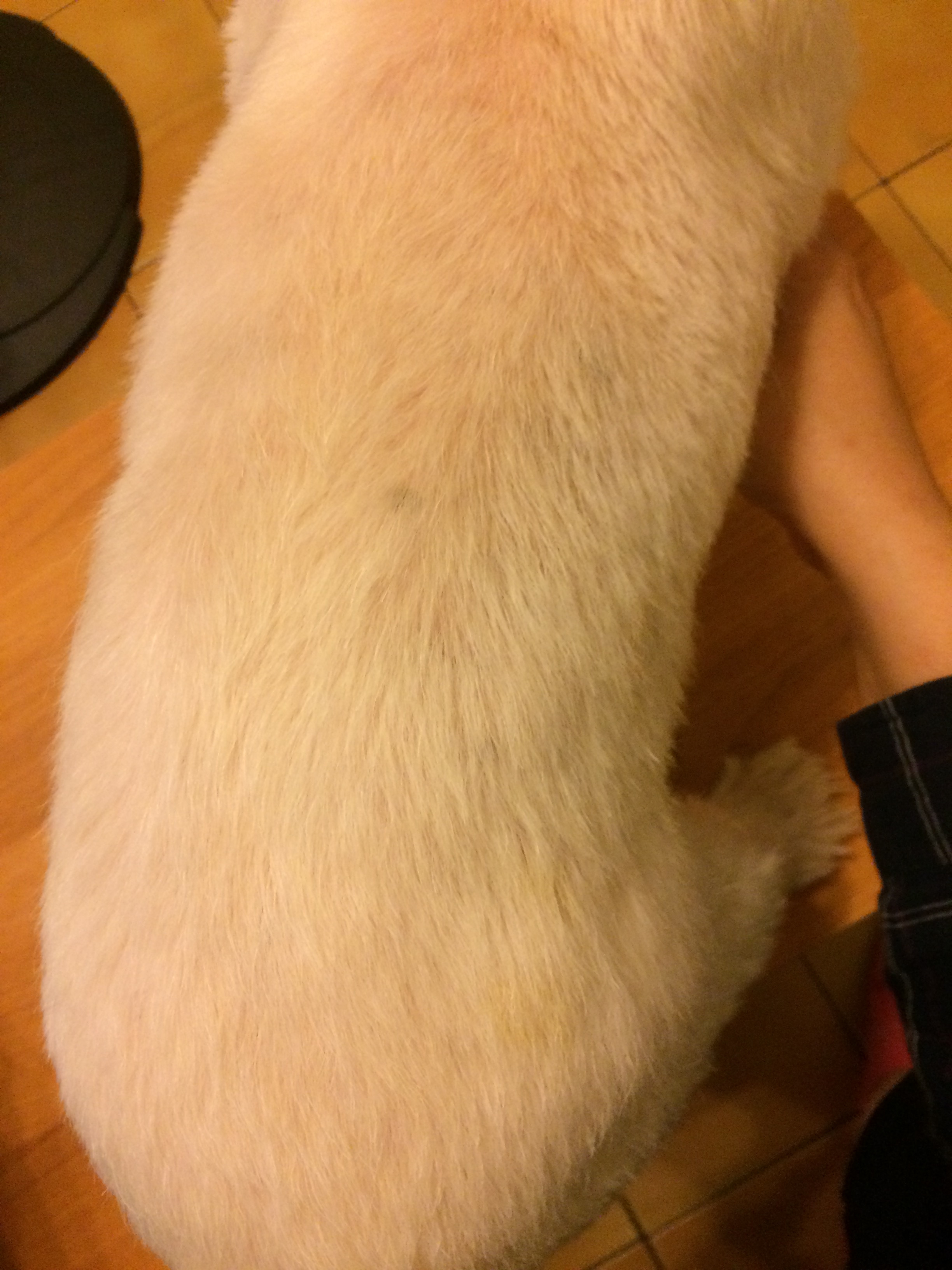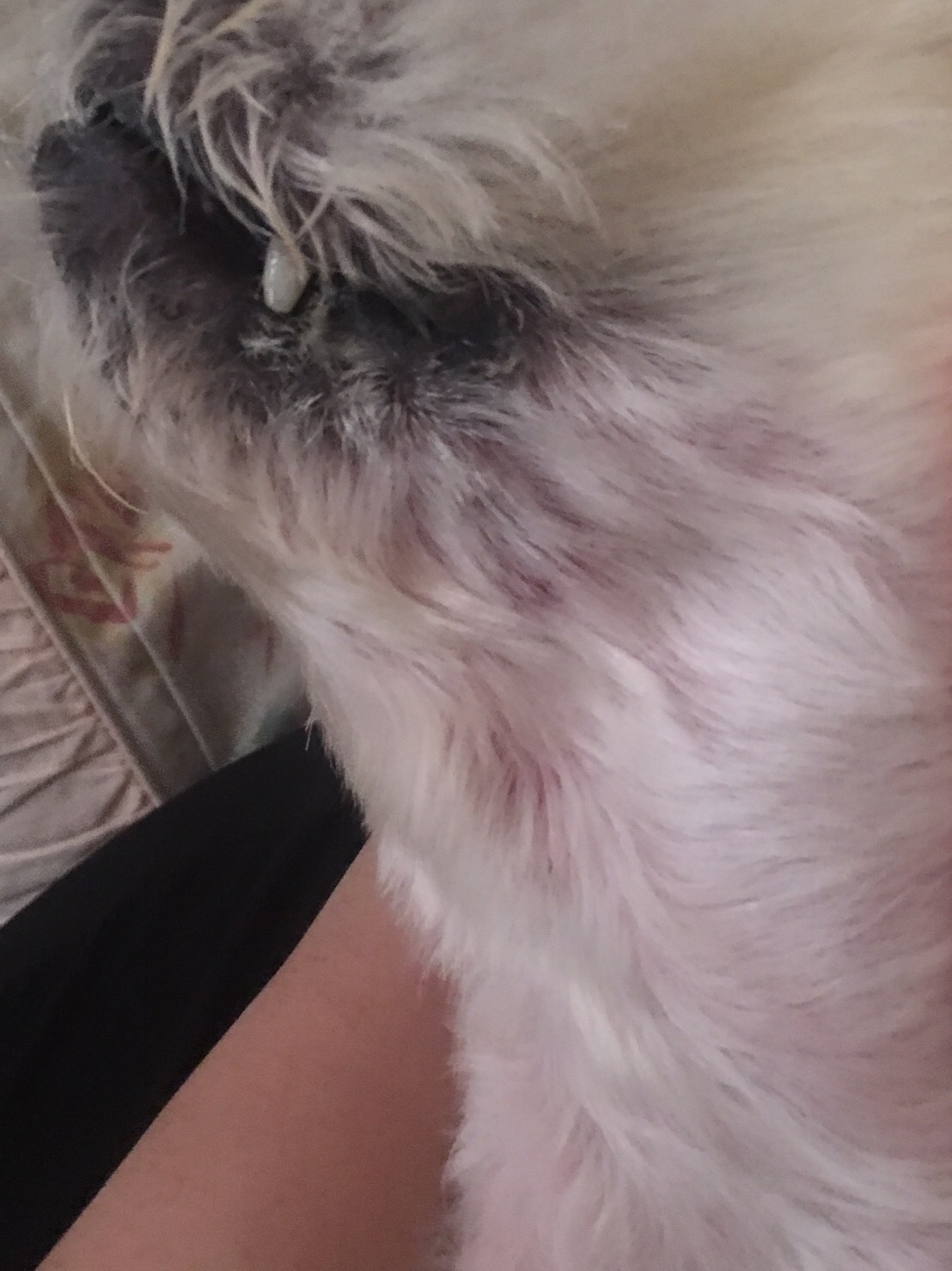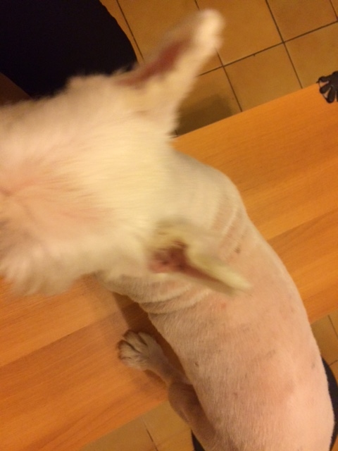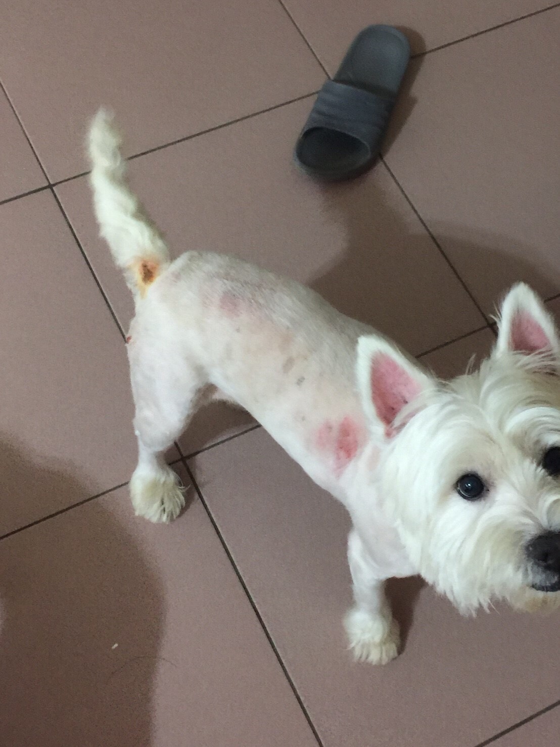 從幼犬時期開始Jimmy的皮膚一直都非常敏感,只要氣候轉變他的皮膚就會有變化,好的時候只有紅紅的,當然抓到破皮流血也是常有的事,黴菌、皮膚炎也是常客,只能常常帶他去給醫生叔叔看,幾乎每個月都要去打針,在醫療上的花費相當可觀,而且非常捨不得常常帶他去挨針。
