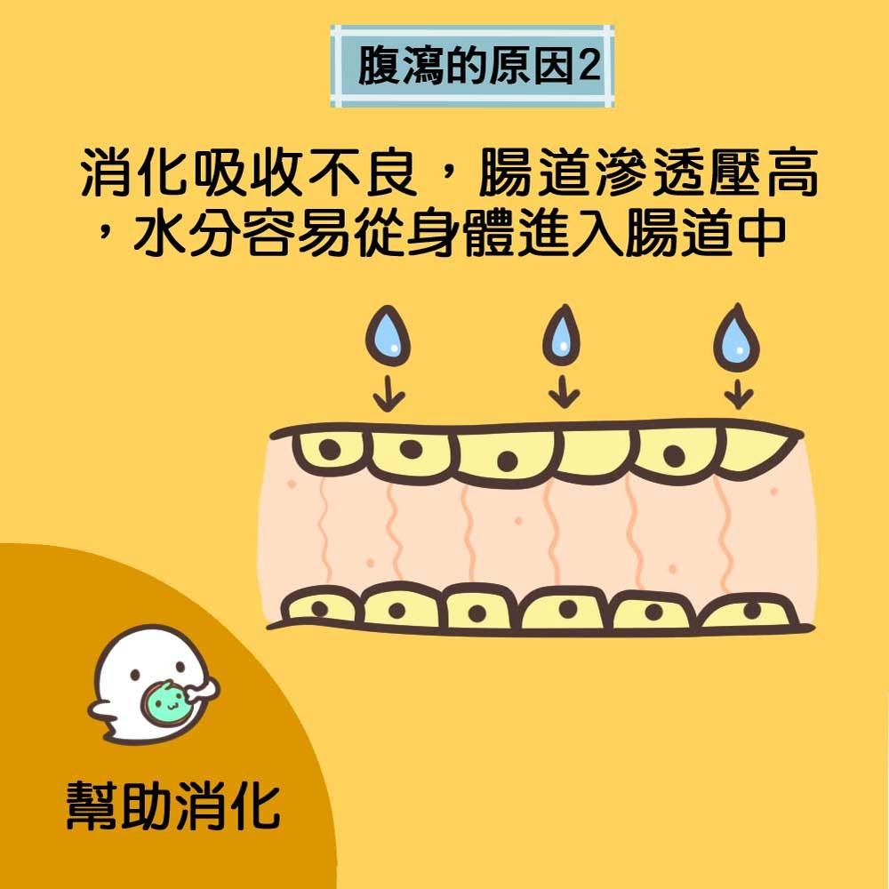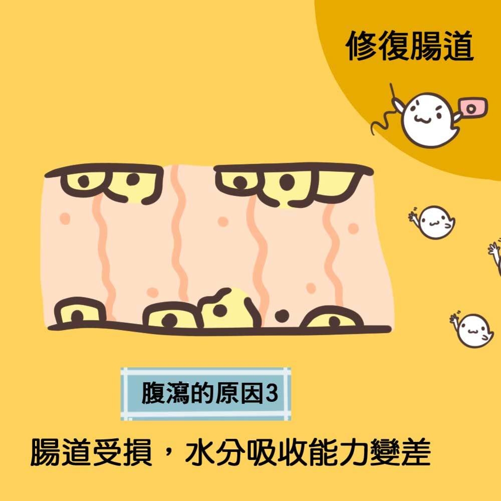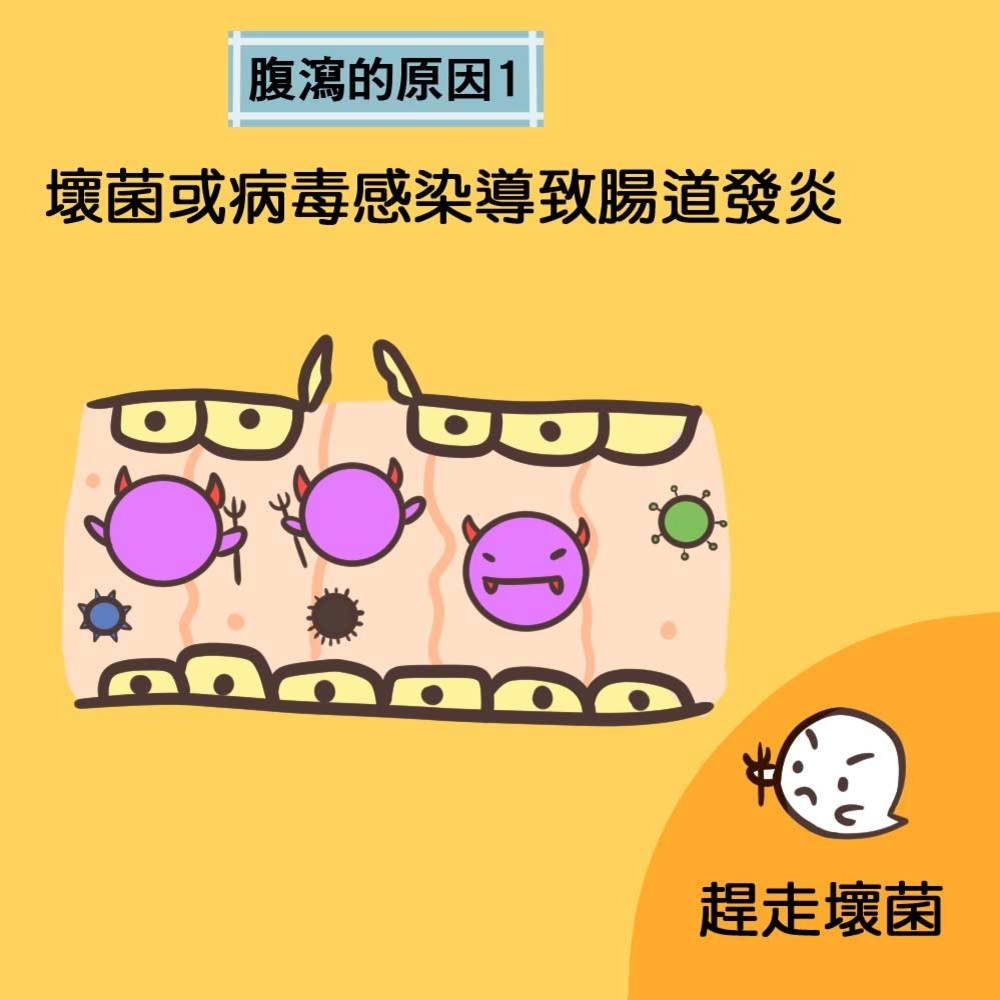 如同原因1所提到的,壞菌會造成腸道受損,使得腸道再吸收水分的能力變差。