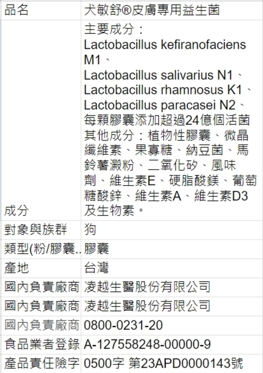 凌越生醫犬敏舒®皮膚專用益生菌,