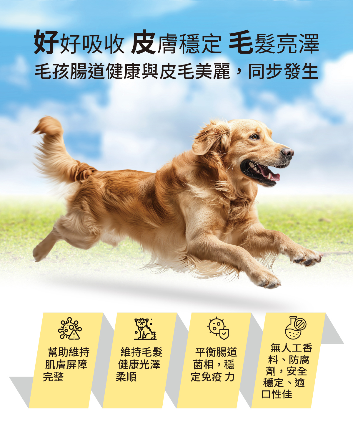 幫助毛孩保健皮膚、平衡菌叢、光澤毛髮!